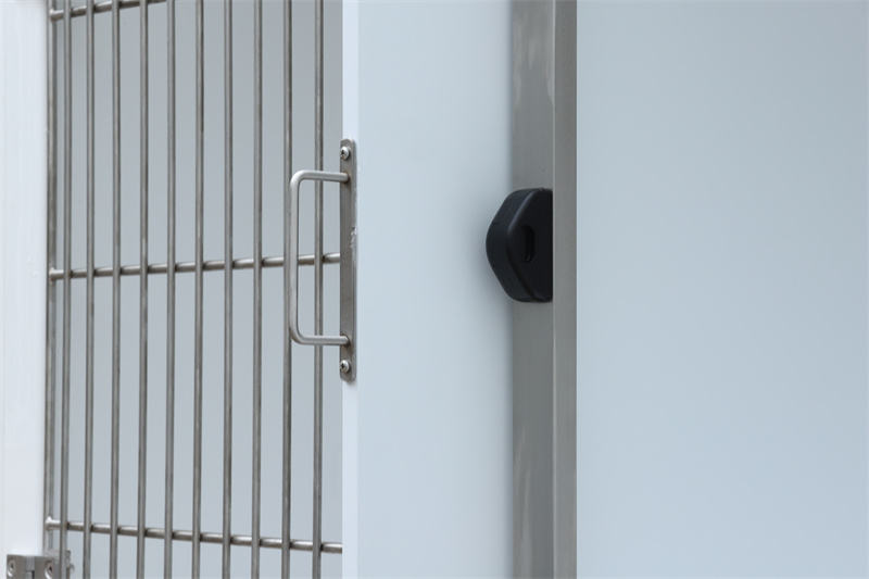 تتميز بأبواب قفل أوتوماتيكية مزدوجة النقاط بشكل قياسي، ويضمن الحد الأدنى من الخلوص بين القضبان العمودية وفتحات القفل التشغيل شبه الصامت حتى عندما تلمس أقدام الحيوانات الأليفة لوحة الباب بخفة. يشكل الإطار بقطر 8 مم، والقضبان الرأسية 6 مم، والقضبان المتقاطعة 8 مم معًا هيكلًا آمنًا وقويًا للقفص.
